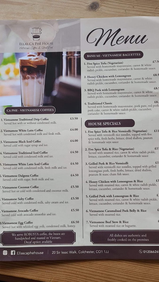 Welcome to Ella's Vietnamese Kitchen, a delightful culinary gem nestled in Colchester. This cozy cafe offers a vibrant menu that captures the essence of Vietnamese cuisine, featuring a mix of aromatic dishes and refreshing beverages.